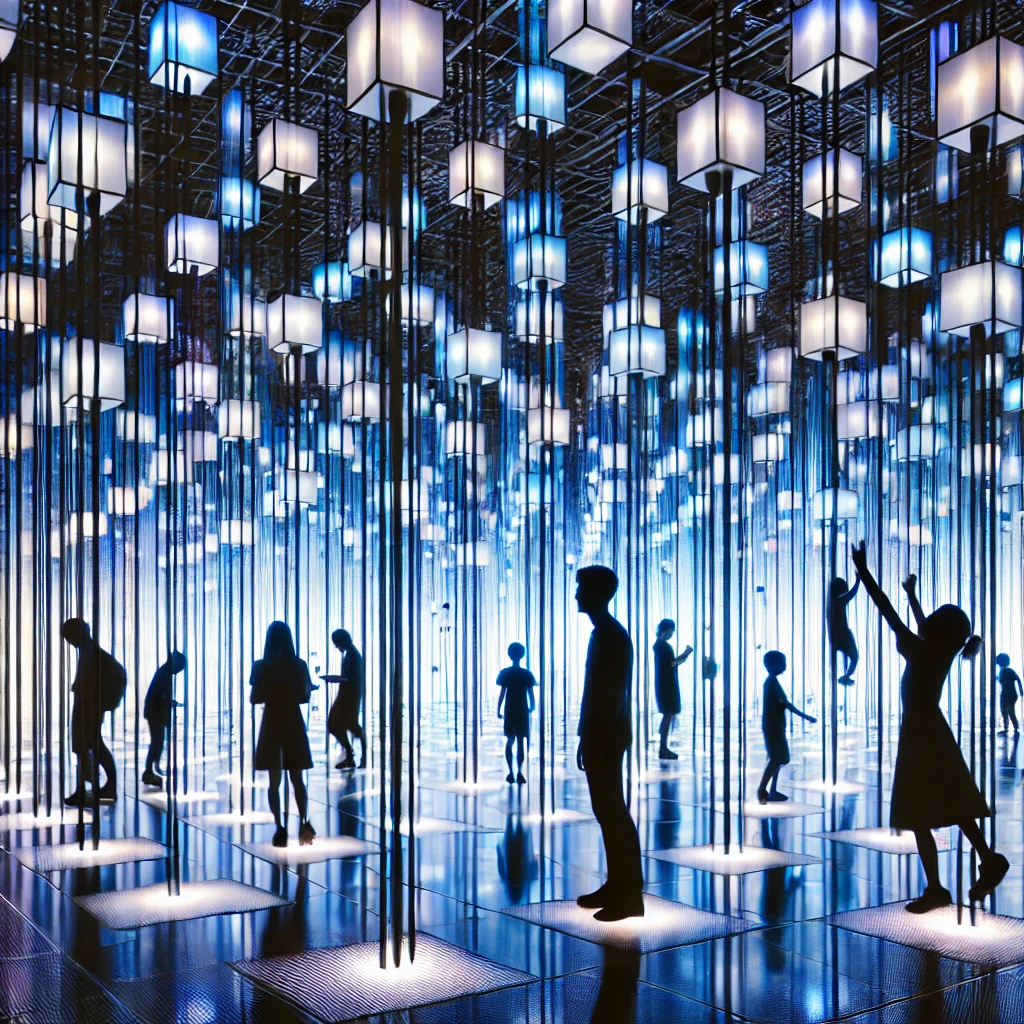 팀랩은 기술과 예술을 융합하여 관객이 적극적으로 참여하는 경험을 강조합니다. 공간과 빛, 소리, 인터랙션을 결합하여 끊임없이 변화하는 예술 작품을 창조합니다.